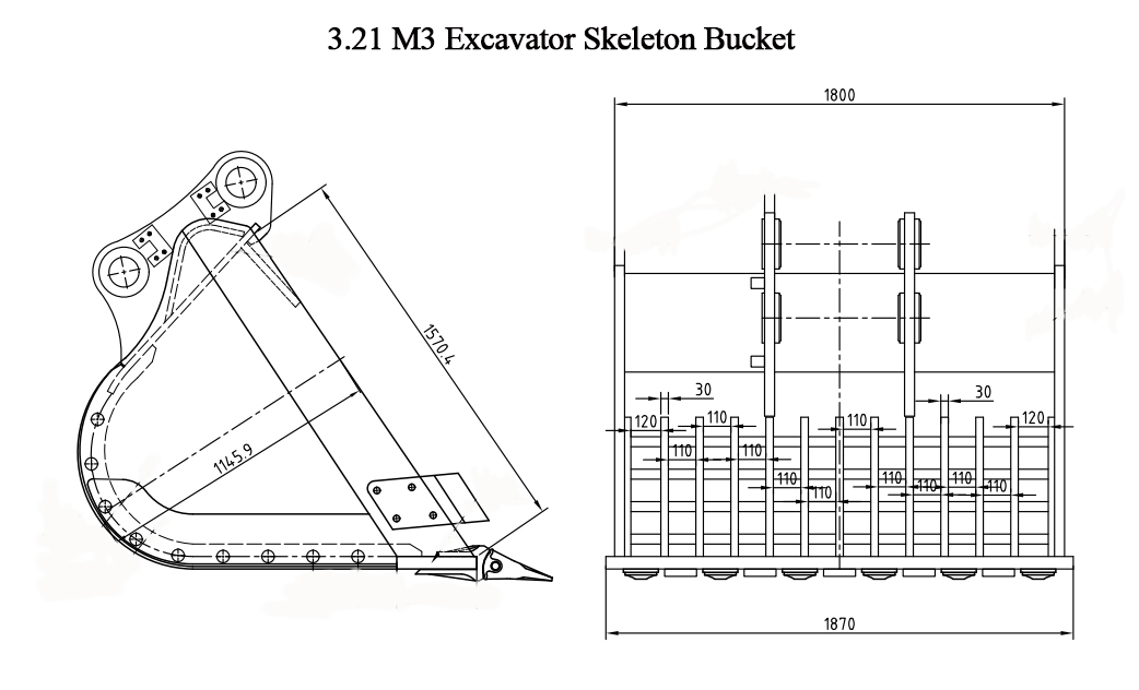 Structure: Skeleton buckets are designed with a sturdy skeleton frame with large gaps between the ribs. This allows for efficient sorting and separation of materials, making them ideal for handling larger volumes of material.